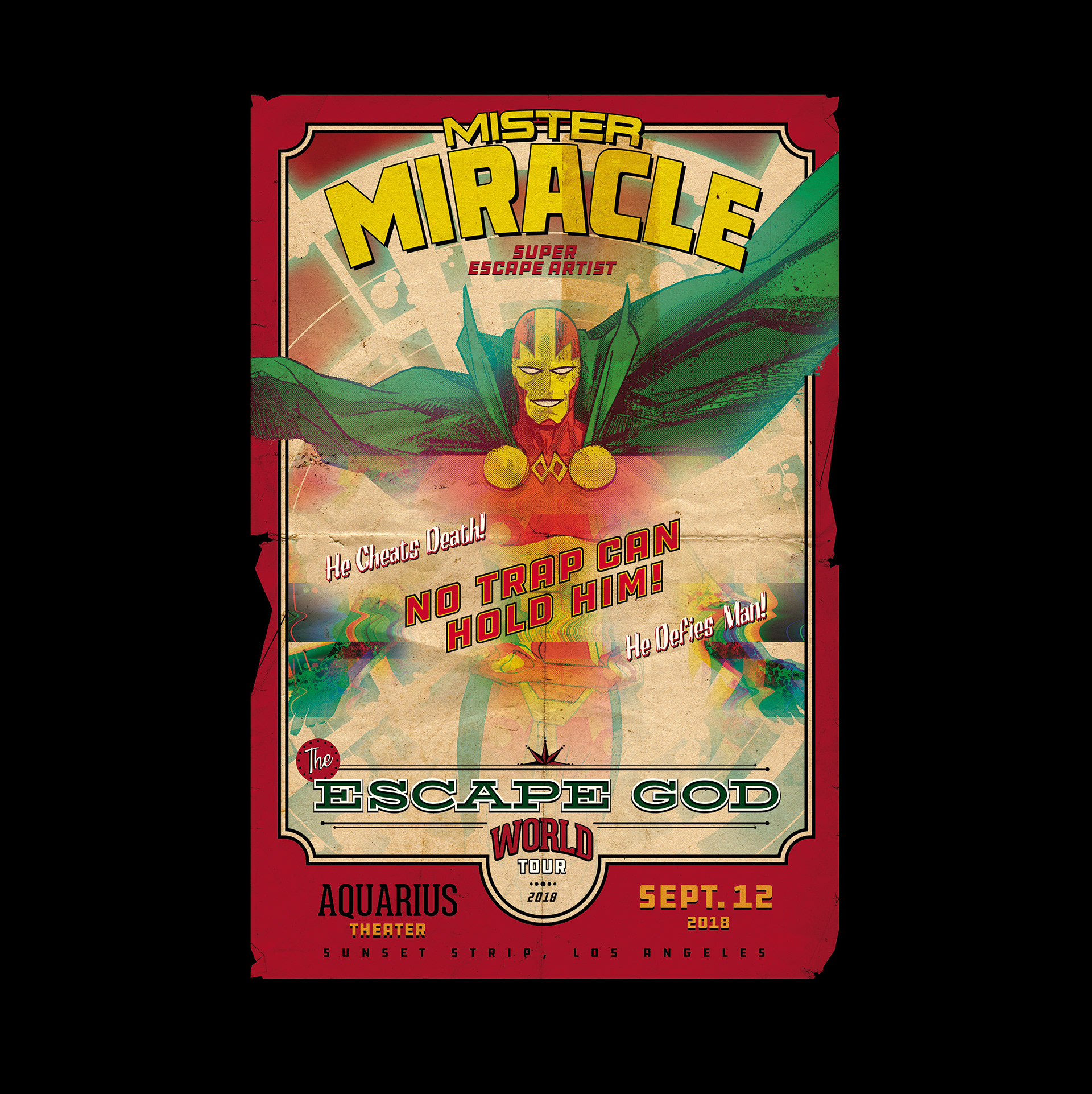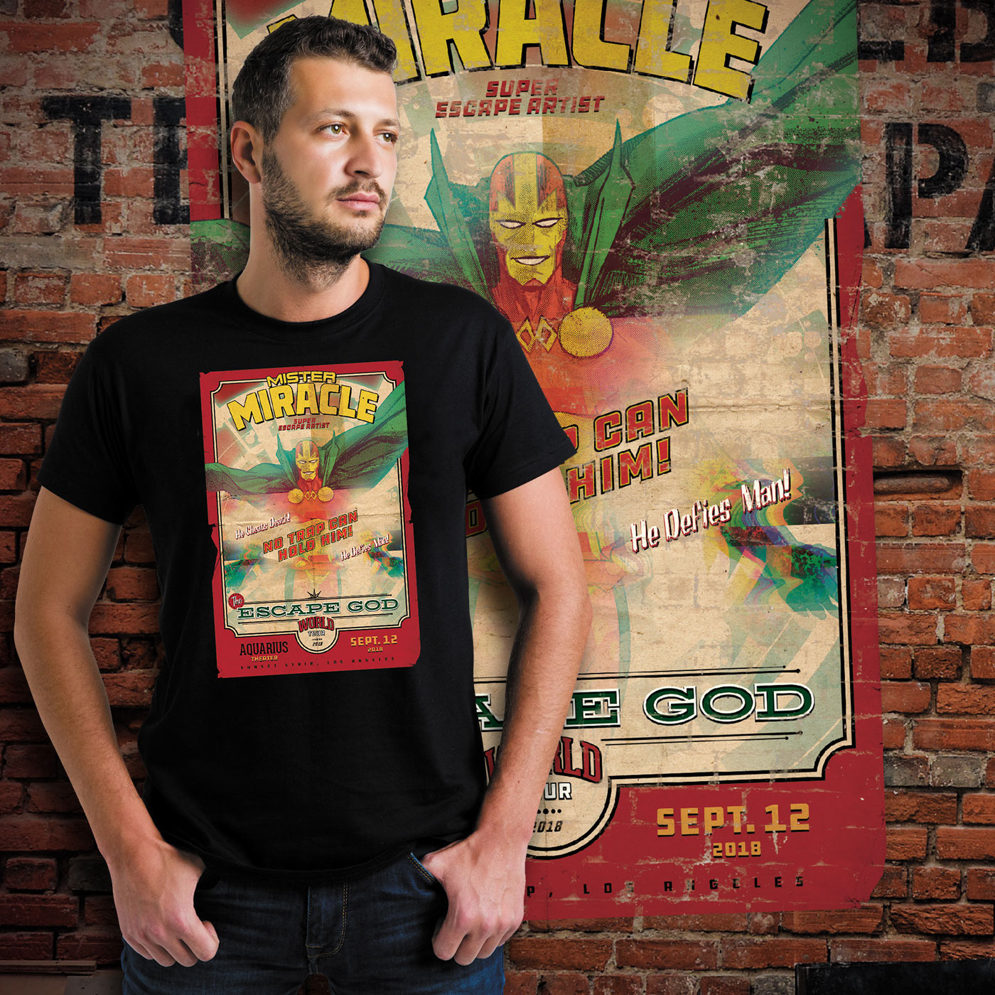 Designed for DC Comics/Graphitti Designs, the Mr Miracle T-shirt sourced a cover drawn by Mitch Gerads and used it as inspiration for the final graphic. Mister Miracle (Scott Free) is a fictional superhero appearing in American comic books published by DC Comics. He first appeared in Mister Miracle #1 (April 1971) and was created by Jack Kirby.
