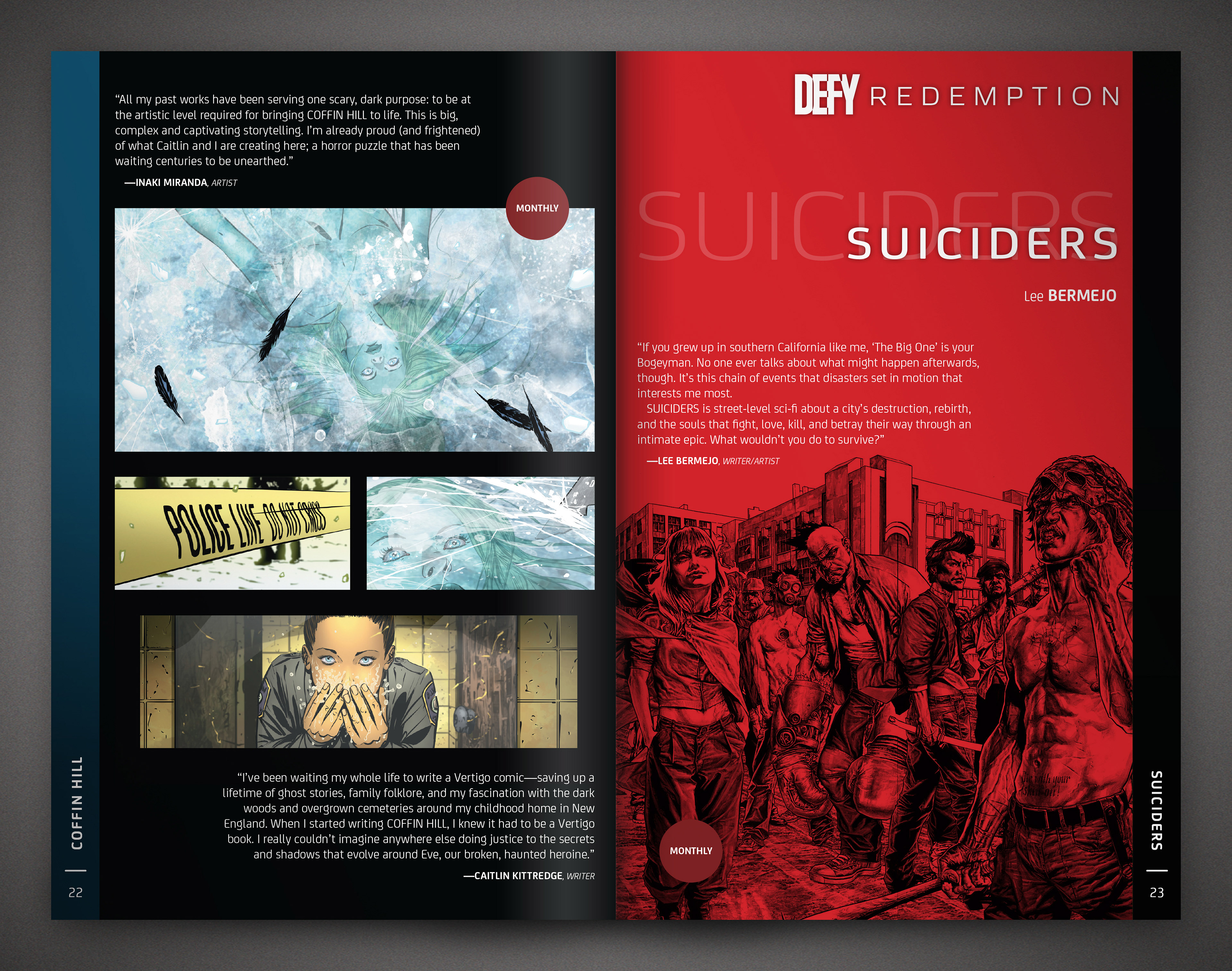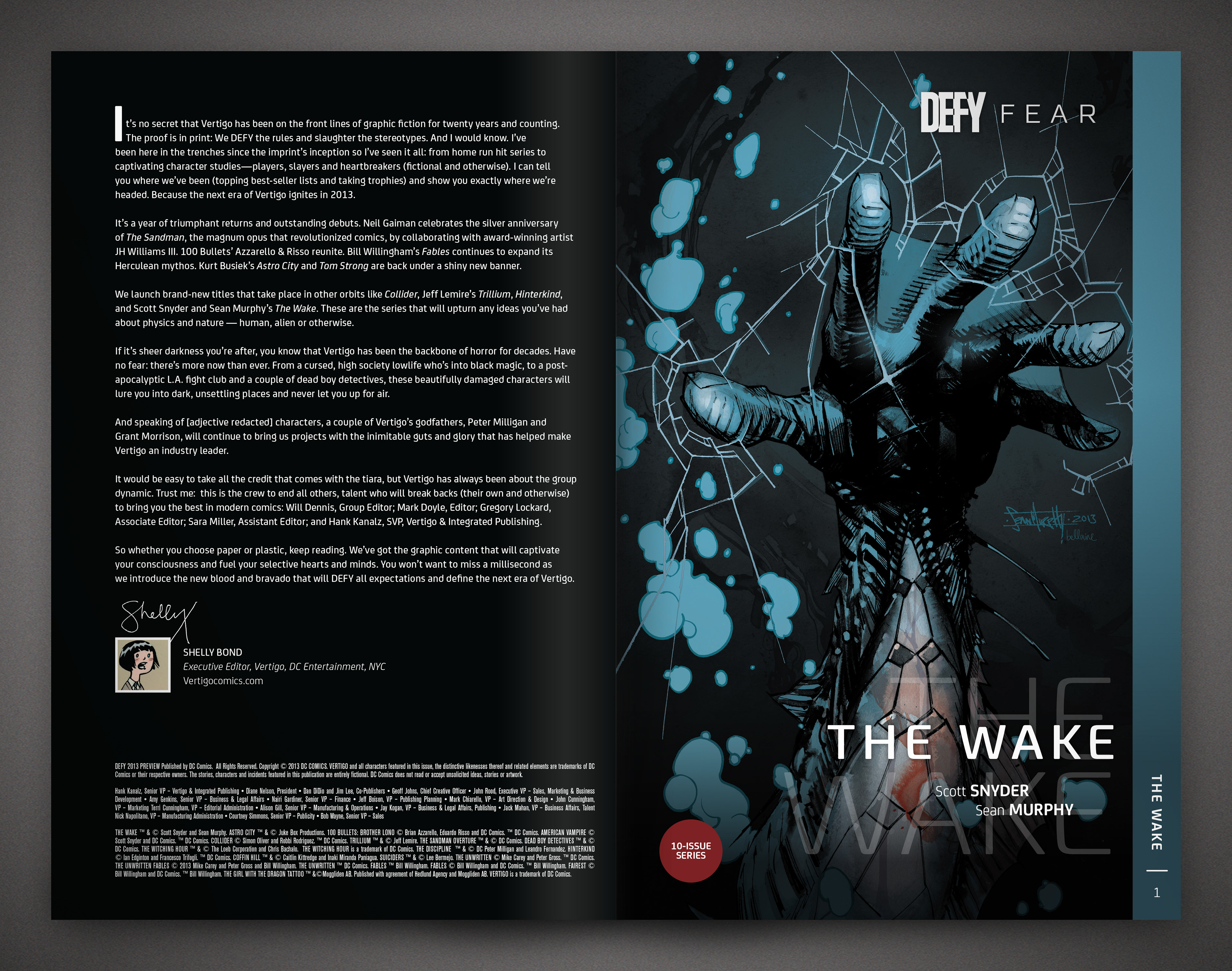 A 28-page catalog highlighting the upcoming book releases for Vertigo Comics in 2013. Following are the cover design and several interior spreads.